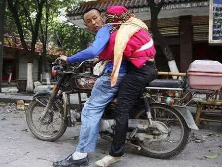 一个在地震中痛失妻子的丈夫不忍将亡妻弃之野外,将妻子和自己绑在一起,用摩托车载着她前往当地的太平间。尽管悲痛欲绝,他也努力要给妻子保全最后的尊严。大爱如此,夫复何求。