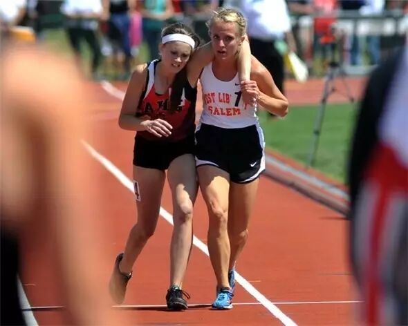 搀扶着受伤的对手一起冲向终点,而她本来很有希望拿一块奖牌。友谊,是最高级的竞技。
