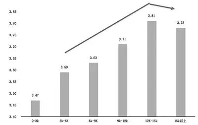是不是收入越高的人,越幸福呢?“我们的调查结果不是说钱越多越幸福,但是也不能说钱越少越幸福,这中间有个平衡点。”费勇说,并非收入越高,个人幸福指数越高。随着个人月收入的增高,居民幸福感先升高后降低。月收入1.2万元-1.5万元的人,幸福感是最高的。