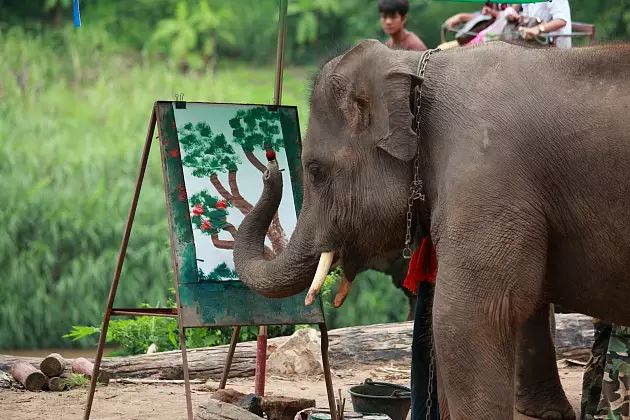 泰国有名的大象营,自1976年就开始训练大象画画。你或许会觉得大象很聪明,但背后它们却经历了难以想象的疼痛。