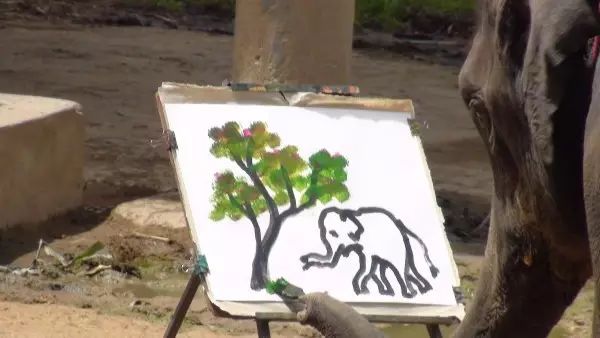 大象的鼻子充满了神经末梢,非常敏感,因此,它们学习绘画的第一课,就叫“疼痛”。