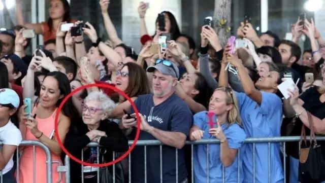 明星到来,一位老人选择了与众不同的观看方式