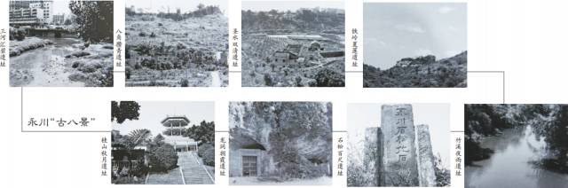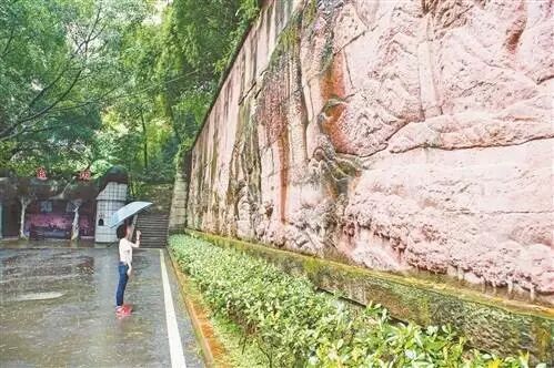 诸华笔下的三河汇碧,也是永川“古八景”(三河汇碧、八角攒青、石松百尺、铁岭夏莲、桂山秋月、竹溪夜雨、龙洞朝霞、圣水双清)之一。 除诸华外,风光秀丽的永川“古八景”还吸引了明代永川知县张时照、诗人罗勋,清代诗人李天英、凌冲宵等留下不少优美的诗作:“积水依灵物,烟云吐纳中”形容“龙洞朝霞”,“胭脂着雨鲜如洗,翡翠飘风软欲携”形容“铁岭夏莲”…… 据介绍,永川“古八景”记载于民国时期的《永川县志》。但根据历代诗人的作品来看,早在宋代,永川“古八景”就已大体形成。 这一推测的证据,是宋绍兴八年(1138年)任永川知县的陈谠写下的一首古体诗《干龙洞》。诗中记载,当时永川天旱,陈谠到龙洞中求雨,登山途中,只见“天造地设神物护,岩壁伏怪多层楼”。还好,“入洞酹请一壶水,出洞已见阴云浮”。当天晚上,大雨倾盆,缓解了旱情。 “干龙洞与‘龙洞朝霞’中的龙洞,是相通的两个洞穴。这首诗说明,在宋代,龙洞就已存在。”周明扬说,龙洞位于现在的永川区红炉镇会龙桥村,相传洞中有龙,干龙洞就在龙洞附近。 在永川人民广场,我们还看到了“古八景”之一——“石松百尺”的石松:三块比人还高大、粗壮的松树化石,屹立在广场的花园中。周明扬介绍,“石松百尺”的原址位于今天的永沪乡石松坪,石松就是松树的化石。如今,永川区文化馆、人民广场等多个地点都摆放着从石松坪运来的松树化石。这些独特的松树化石,已成为永川一道独特的风景。 市民在永川桂山公园参观“古八景”雕塑墙。