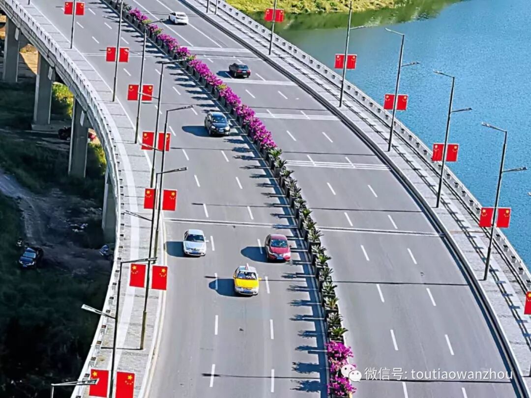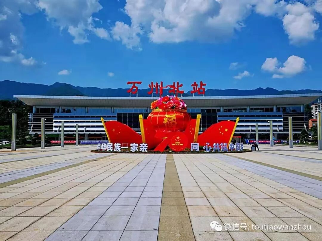 为迎接新中国成立70周年,万州盛装打扮,喜迎节日到来。 白岩路,江南大道、 南北滨江路、高笋塘等地…… 大街小巷处处洋溢着“中国红”, 整个城市,因为五星红旗, 进入了国庆氛围,点燃了热情。 在万州北站站前广场, 一个硕大的花篮布景 坐落在广场正中央。 整个布景在万州北站的映衬下 显得格外雄伟壮观, 看上去喜庆大气。 龙溪河大道 也布置上了灯饰、 国旗和花卉。 不仅白天的万州变漂亮了, 夜晚的万州也毫不逊色。 江边七彩灯火 似一道道彩虹, 隔江相望戴家岩,西山钟楼, 如梦如幻,令人如痴如醉。 为了喜迎新中国成立70年, 就连太白岩都“染”了个新发型。 记者:姚杰飞 图片来源:郭长源、程禾、杨青 编辑:林樵 编审:谭剑